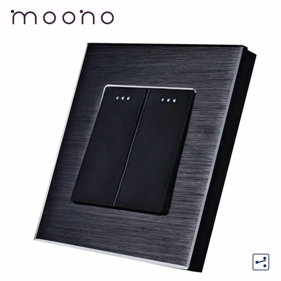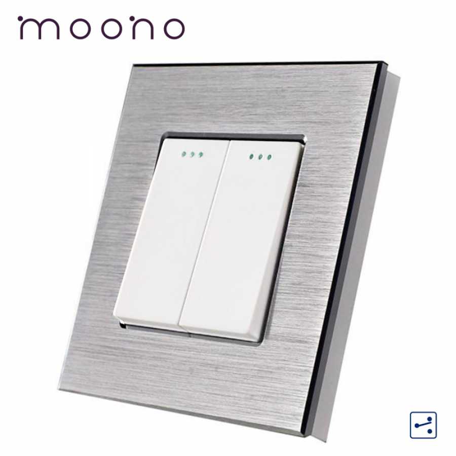 Întrerupător clasic dublu cap-scară M2 moono - intrerupator dublu mecanic, model M2, cu rama de aluminiu securizata, rezistenta la foc, zgarieturi, umiditate, mereu va arata impecabil.