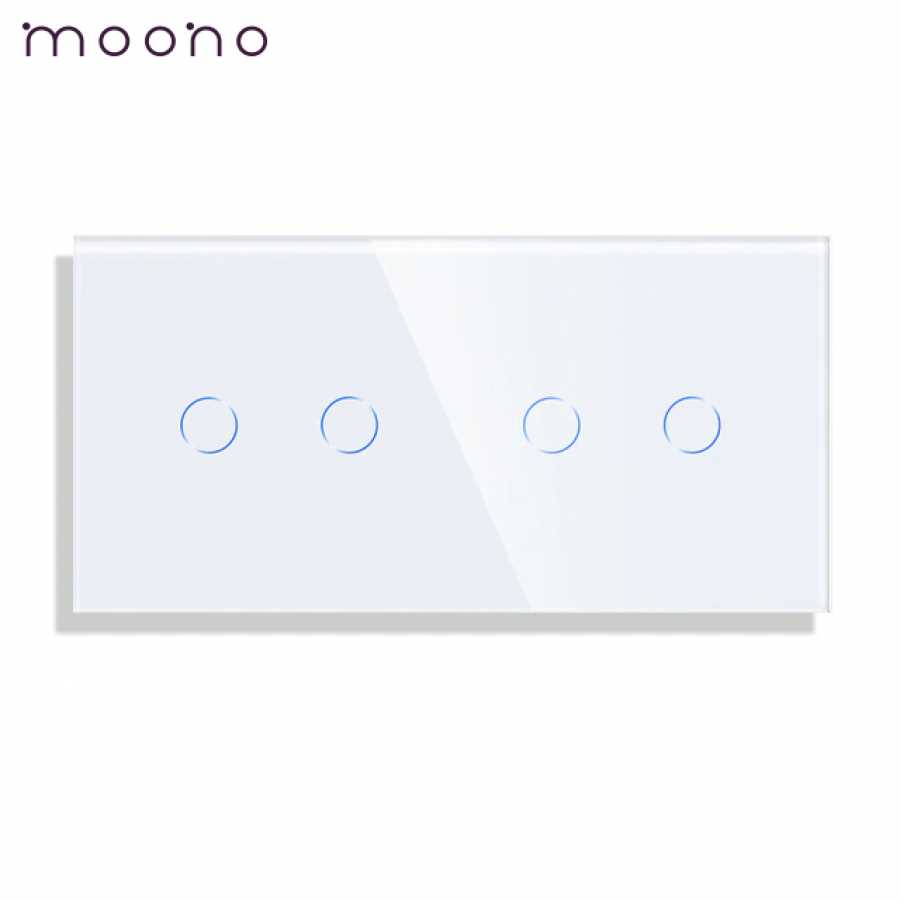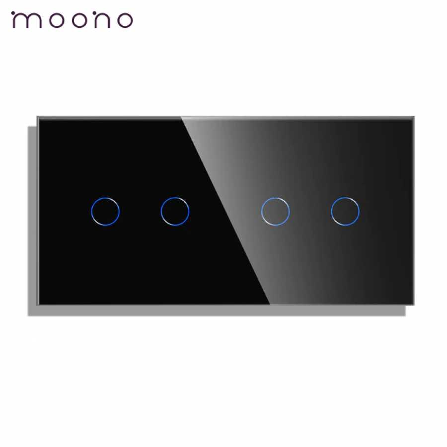 moono oferă o gamă variată de întrerupătoare cu senzor tactil-capacitiv, panouri din sticlă securizată, rezistentă la foc, rame de sticlă sau aluminiu, a căror dimensiune (86mm x 86mm) acoperă bine dozele. Fabricate pe standard German, se potrivesc în dozele clasice pe care le aveți deja în perete și nu necesită nici un fel de modificare a instalației electrice existente. Nu sunt înscripționate cu logo și pot fi montate atât pe verticală cât și pe orizontală.