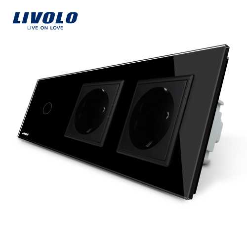 Întrerupător touch simplu + Priză dublă Schuko din sticlă Livolo