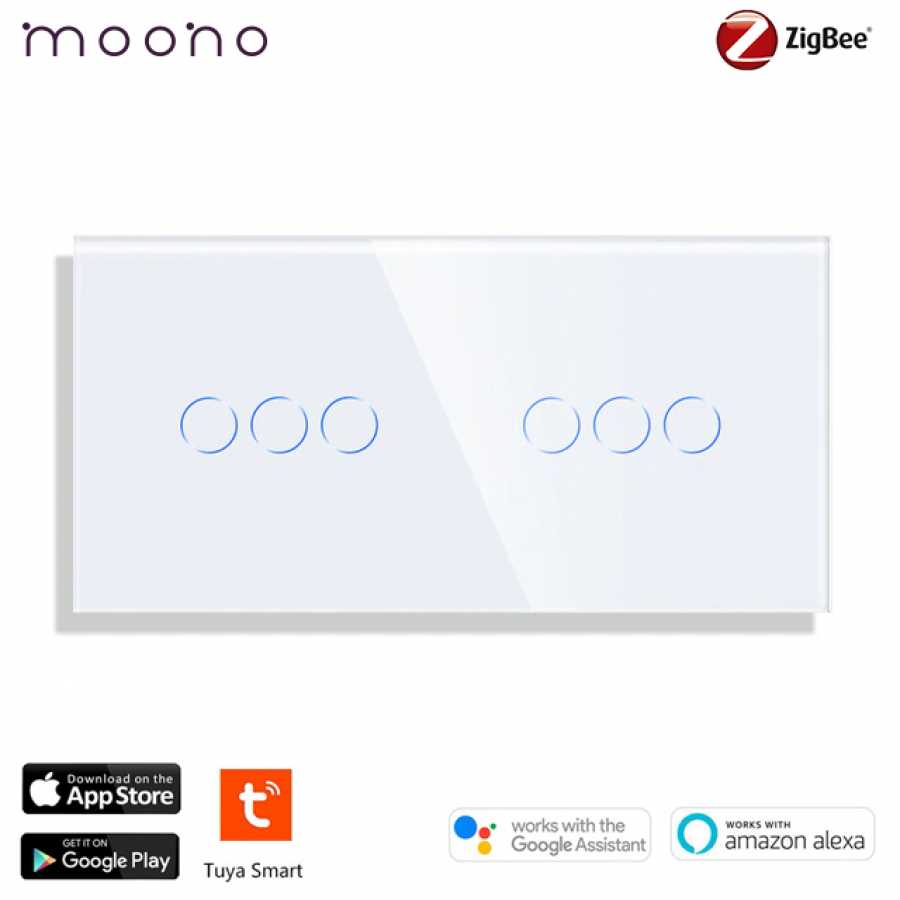 Intrerupator touch triplu + triplu ZigBee cu nul moono, cu panou din sticla