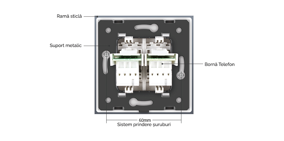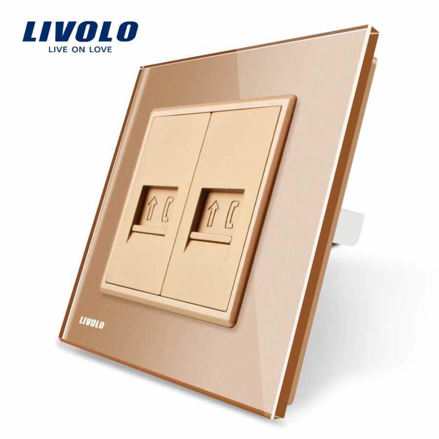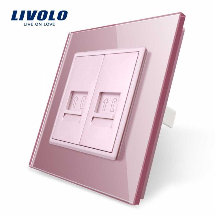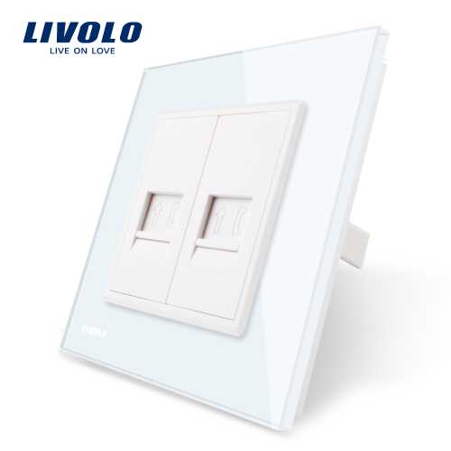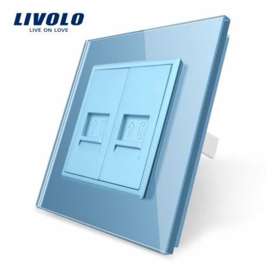 Priză dublă Telefon RJ11 Livolo - priza dubla media cu doua mufe pentru telefon cu conector RJ11 cu 4 contacte, potrivite pentru a conecta un telefon, fax, modem, cu rama din sticla Crystal rezistenta la zgarieturi si uzura, cu rama interioara metalica, produs ignifug. Necesita o doza standard.