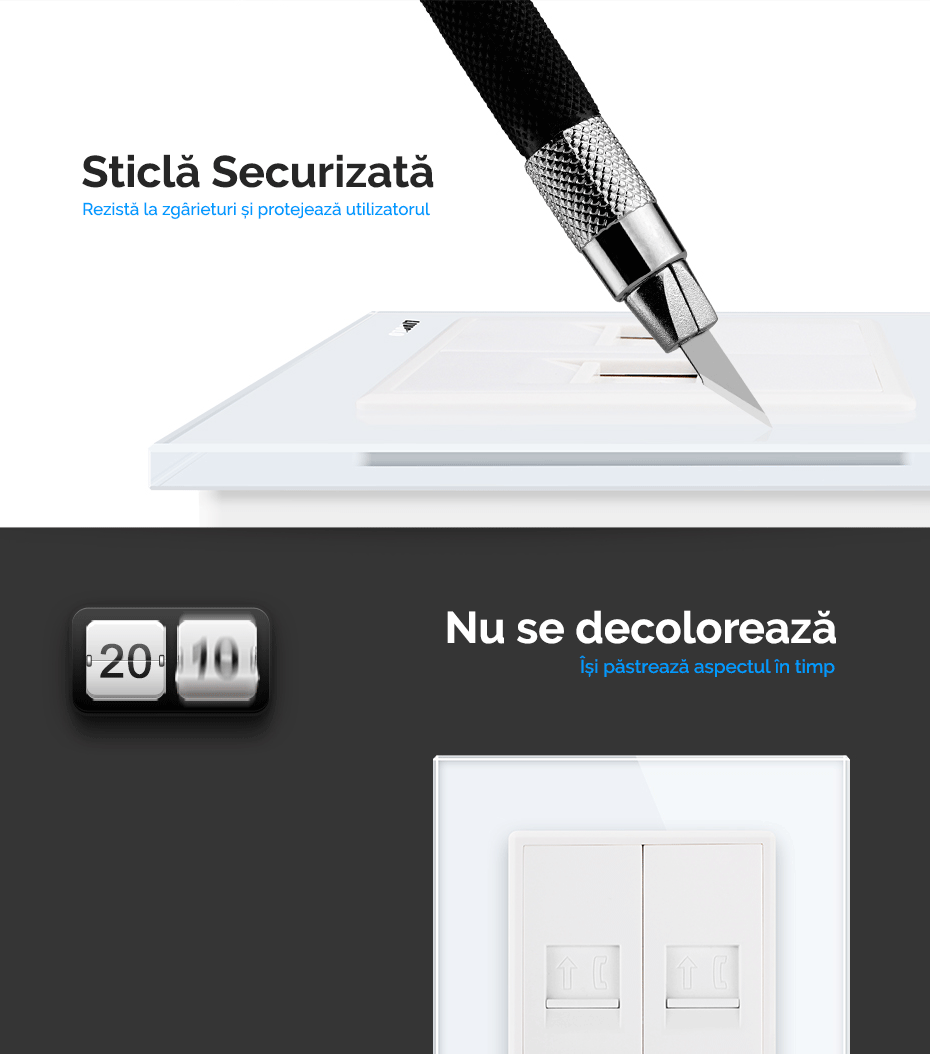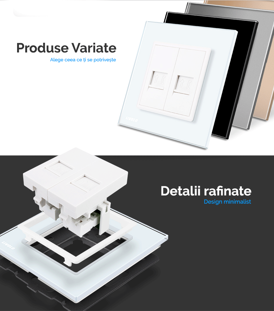Livolo oferă o gamă variată de prize și întrerupătoare tactile cu rame și panouri din sticlă securizată, rezistentă la foc. Fabricate pe standard German, se potrivesc în dozele clasice pe care le aveți deja în perete și nu necesită modificare a instalației electrice existente.