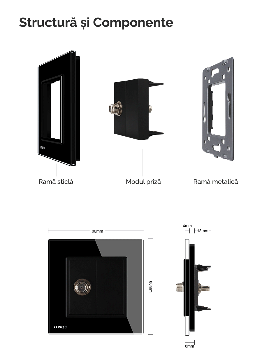 Se monteaza rapid si nu necesita modificarea instalatiei electrice existente. Are si un modul blank care poate fi inlocuit cu o alta priza media din gama Livolo.