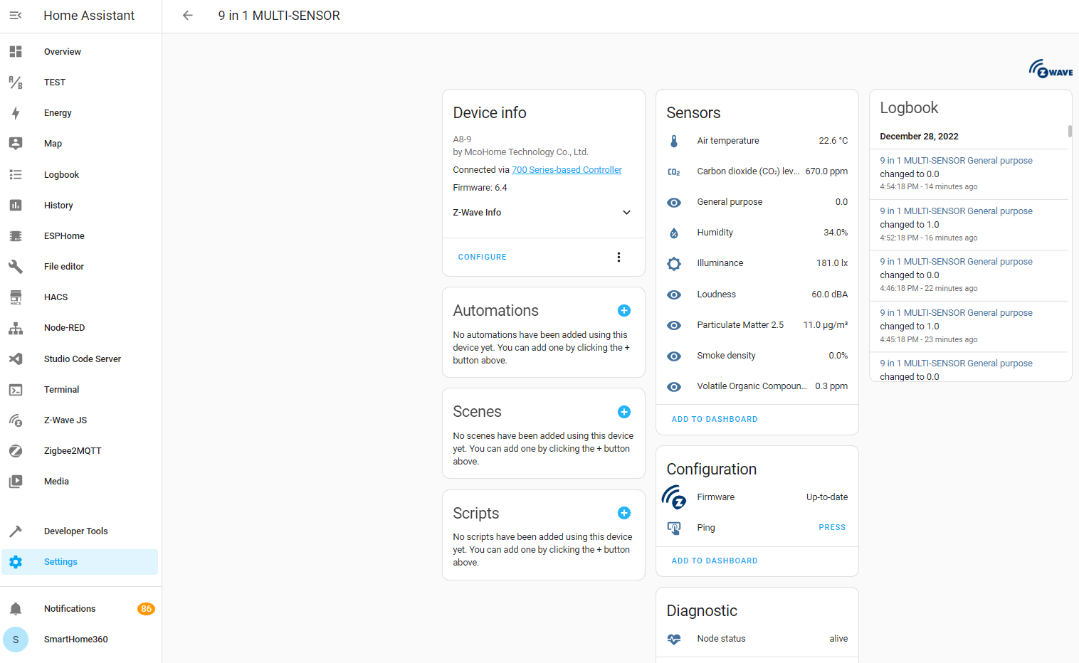MCO HOME MULTI-SENSOR A8-9 - Multisenzor 9 in 1 Z-Wave Plus