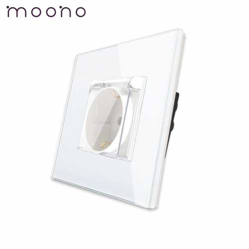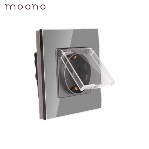 Priză simplă Schuko cu capac M1 moono, cu rama din sticla