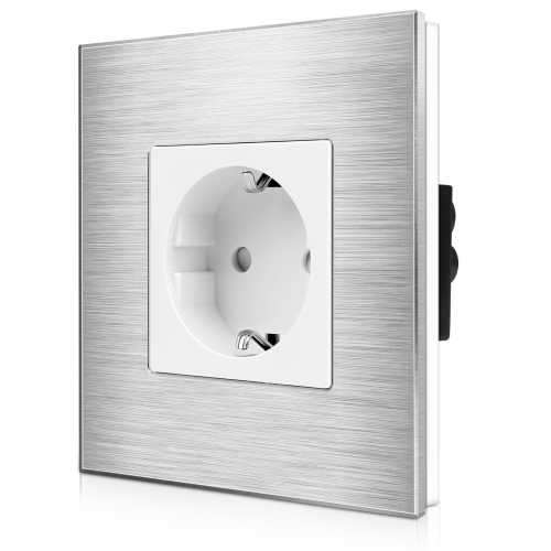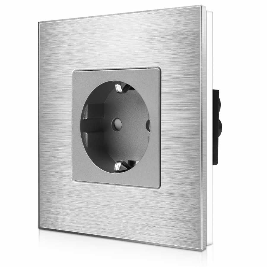 Priză simplă Schuko M2 moono, cu rama din aluminiu