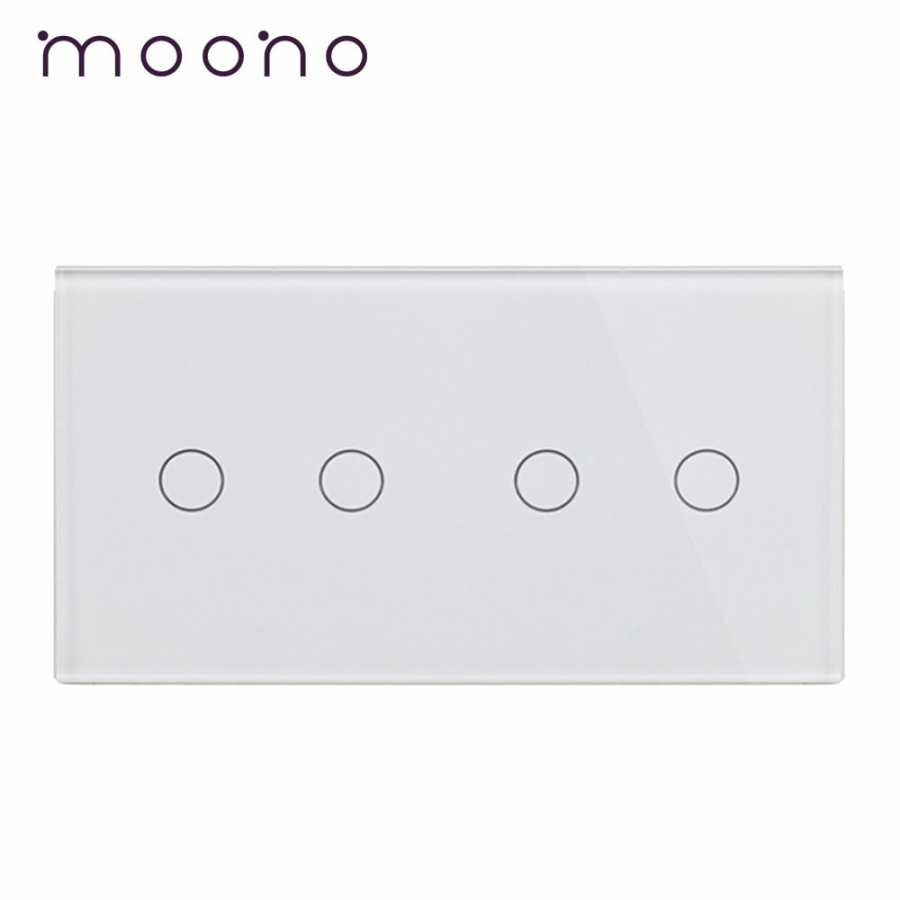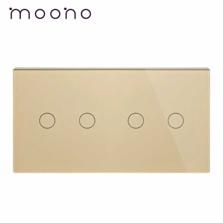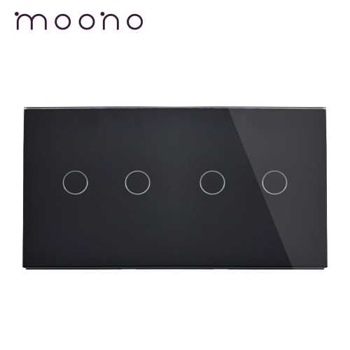 Panou întrerupător dublu+dublu din sticlă M1 moono - panou din sticla moono, model M1, pentru doua intrerupatoare duble cu touch, fabricat din materiale premium, rezistente la zgarieturi si umiditate, mereu va arata ca nou.