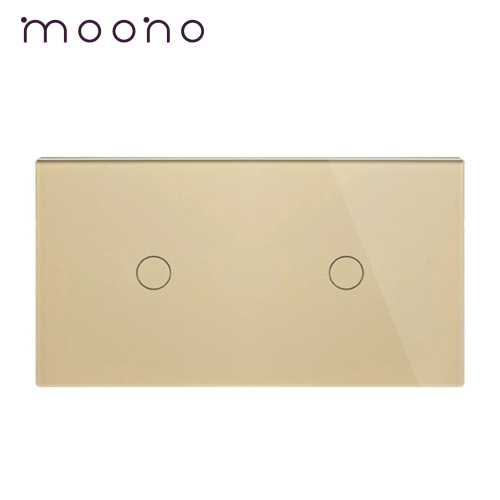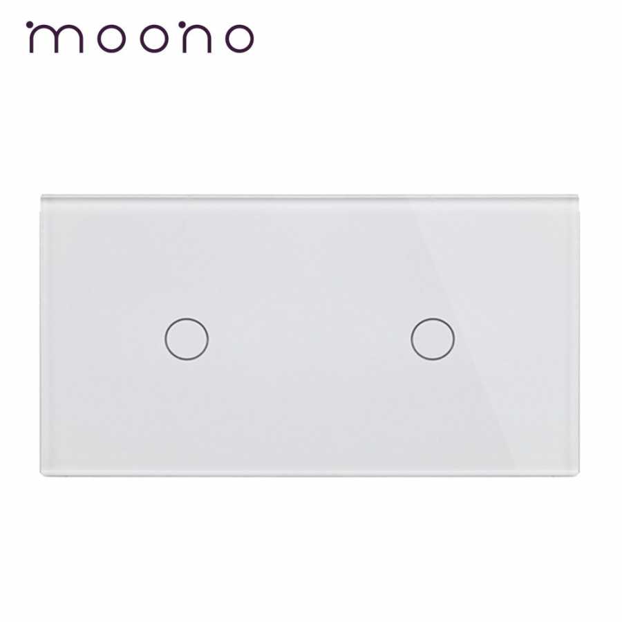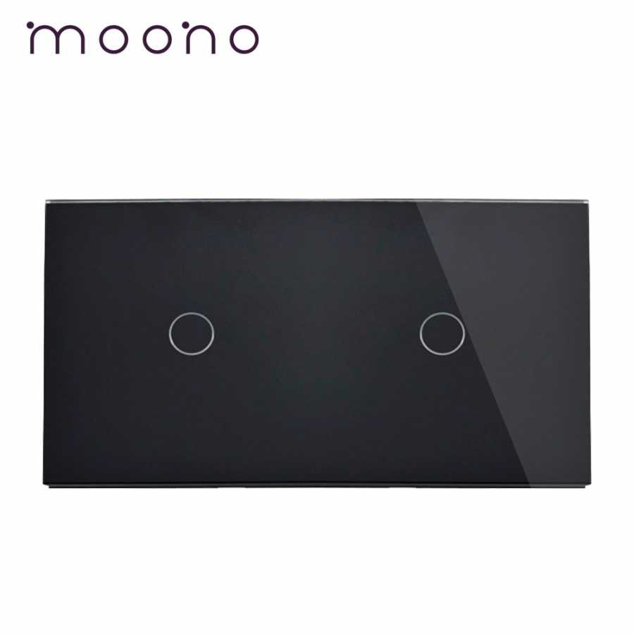 Panou întrerupător simplu+simplu din sticlă M1 moono - panou din sticla moono, model M1, pentru doua intrerupatoare simple cu touch, fabricat din materiale premium, rezistente la zgarieturi si umiditate, mereu va arata ca nou.