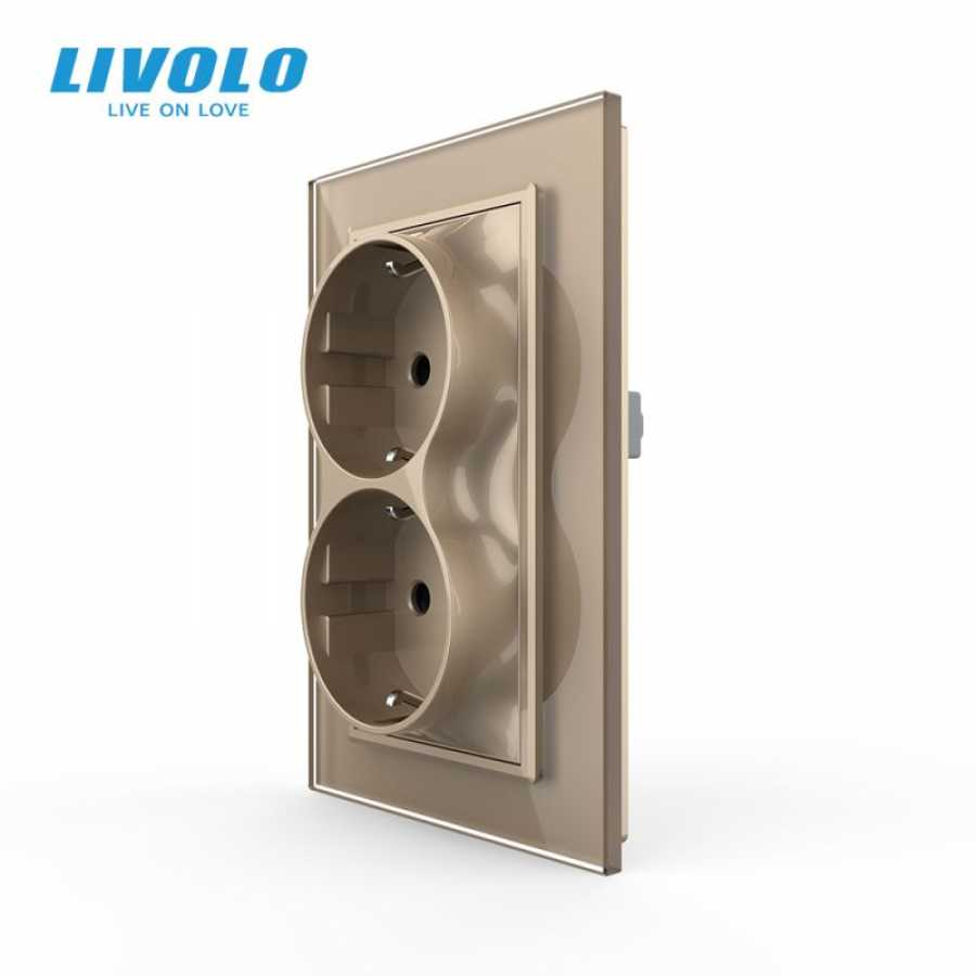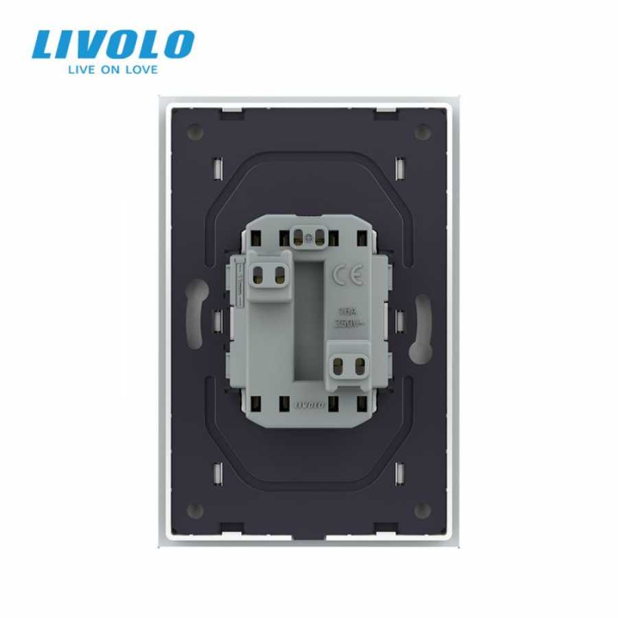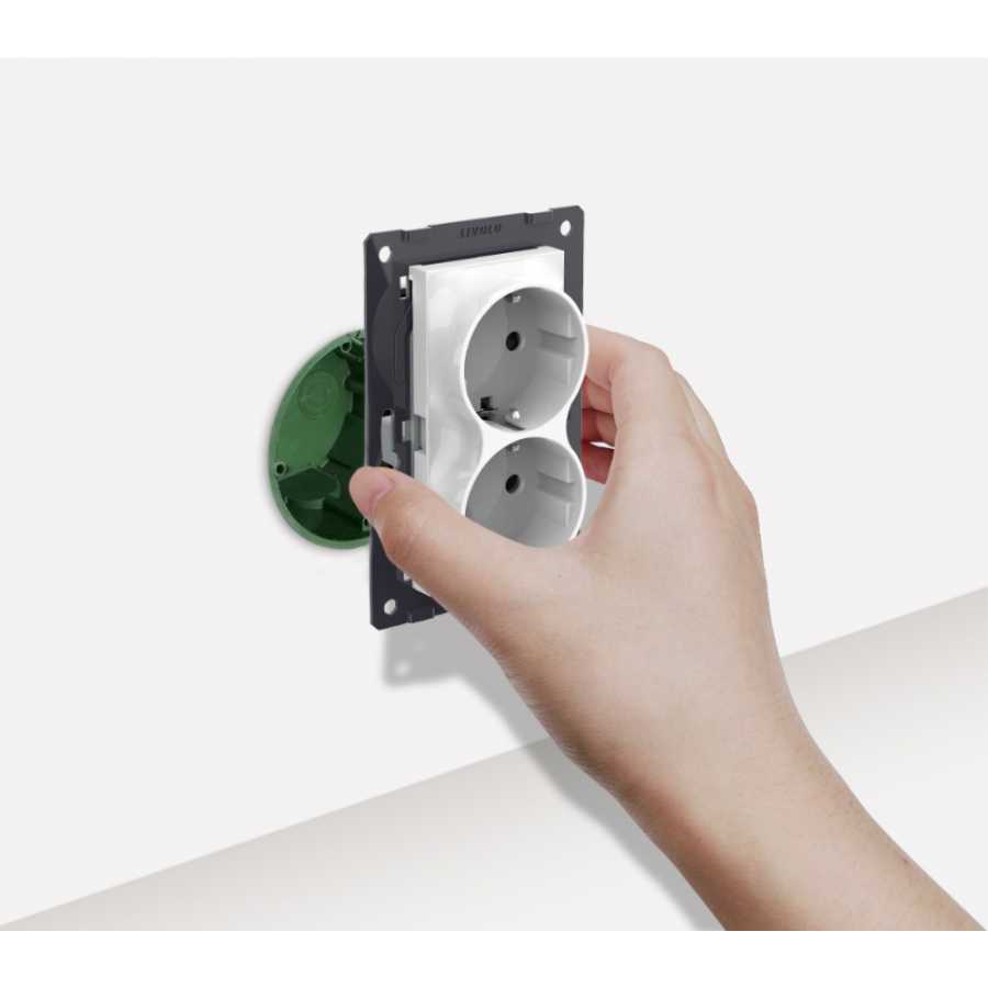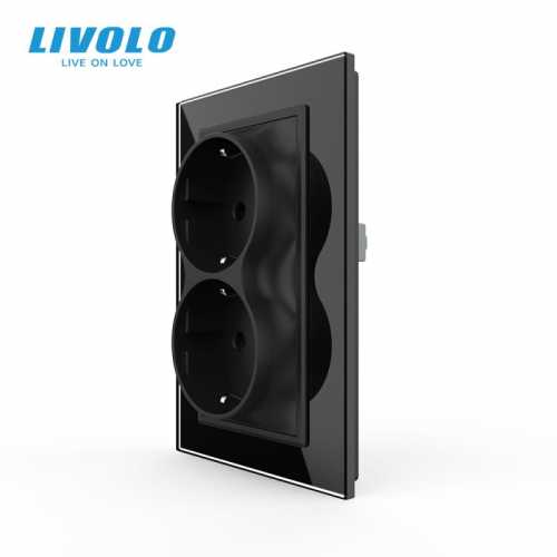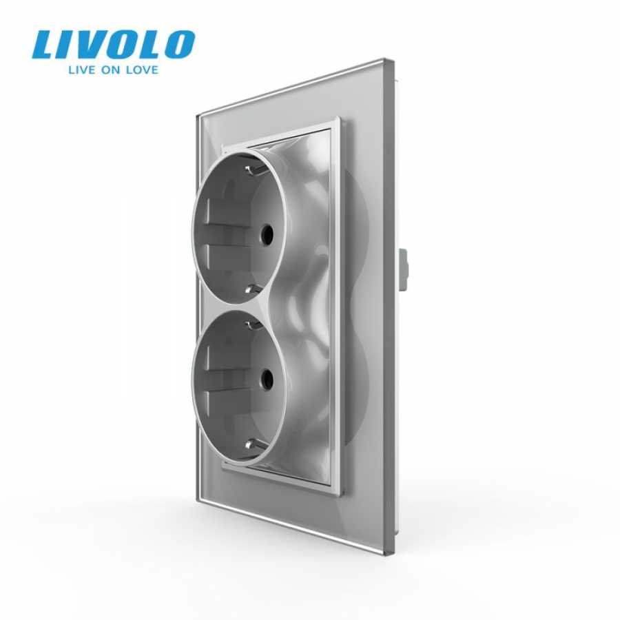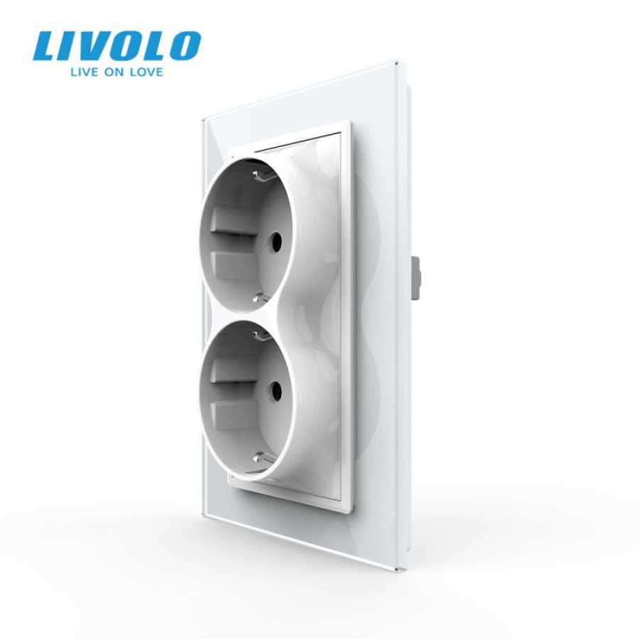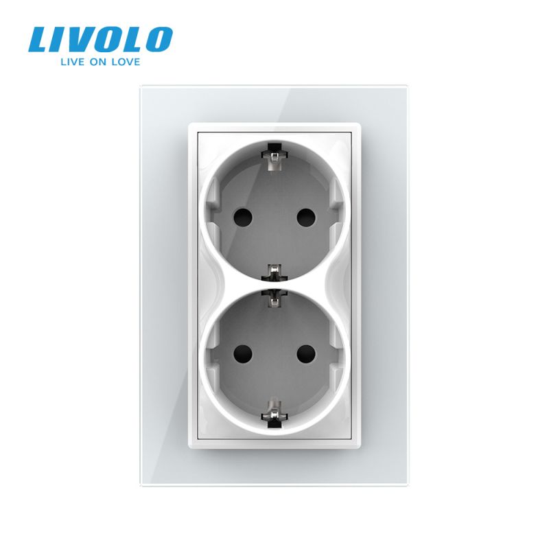 Priza dubla pentru 1 singura doza rotunda pe standard german cu prindere cu suruburi si cu rama din sticla Livolo (rama de sticla nu are logo Livolo inscriptionat)