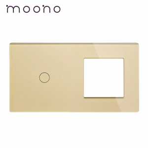 Panou întrerupător simplu+ramă dublă din sticlă M1 moono - panou din sticla moono, model M1, pentru un intrerupator simplu cu touch si doua module de priza la alegere, pot fi montate prize simple schuko sau media (TV, internet, audio telefon). Este fabricat din materiale premium, rezistente la zgarieturi si umiditate, mereu va arata ca nou. Panou frontal din sticla pentru o priza dubla si un intrerupator simplu cu touch (atingere) on/off, cu led albastru deschis &nd..