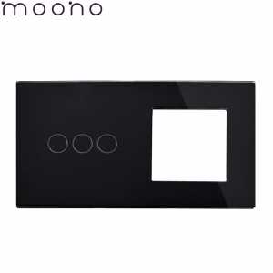 Panou întrerupător triplu+ramă din sticlă M1 moono - panou din sticla moono, model M1, pentru un intrerupator triplu cu touch si un modul priza la alegere, pot fi montate prize simple schuko sau media (TV, internet, audio telefon). Este fabricat din materiale premium, rezistente la zgarieturi si umiditate, mereu va arata ca nou. Panou frontal din sticla pentru un modul priza si un intrerupator triplu cu touch (atingere) on/off, cu led albastru deschis – cand i..