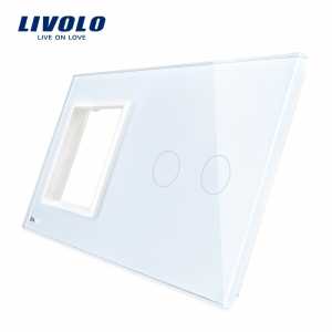 Panou întrerupător 2 x simplu+ramă din sticlă LIVOLO - Panou sticla pentru doua intrerupatoare simple cu touch si o rama de sticla pentru o priza la alegere, pot fi montate prize simple schuko sau media (TV, internet, audio, telefon). Se poate combina doar cu produse din gama Livolo. Panoul este din sticla Crystal termorezistenta, metal, plastic. Dimensiuni(L x l): 222 x 80 mm. Intrerupator cu touch (atingere ) on/off..