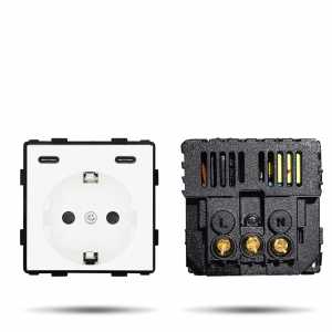 Priză dublă Schuko + TV/RJ45 Livolo - priza dubla media cu un modul de priza simpla schuko si un modul cu o mufa pentru TV si o mufa mufa tip RJ45, categorie de retea de comunicatie 6e, cu conexiune rapida UTP, ce permite transferul de date catre echipamentele de retea (PC-uri, switch-uri, hub-uri şi rutere), cu rama din sticla Crystal rezistenta la zgarieturi si uzura, cu rama interioara metalica, produs ignifug. Necesita d..