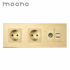 Priză cvadrupla Schuko M2 moono - Priza cvadrupla cu impamantare, model M2, cu rama din aluminiu, rezistenta la zgarieturi si uzura. Are un design modern si materiale de calitate. Este compusa din suport metalic, patru prize Schuko si rama securizata din aluminiu. Se monteaza foarte usor si nu este necesara modificarea instalatiei electrice existente. Se poate monta atat pe orizontala cat si pe verticala. Este compatibila doar cu alte produse ..