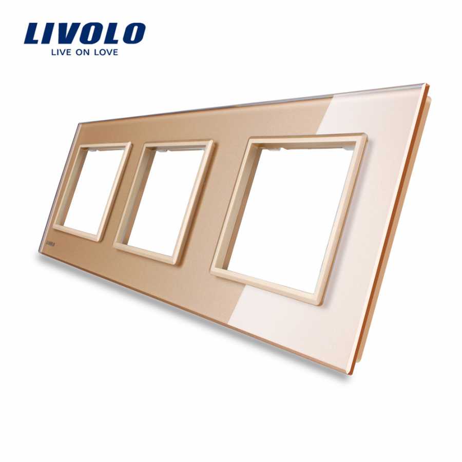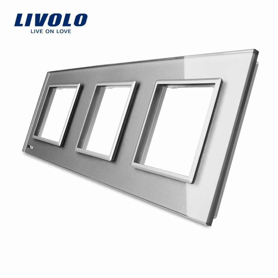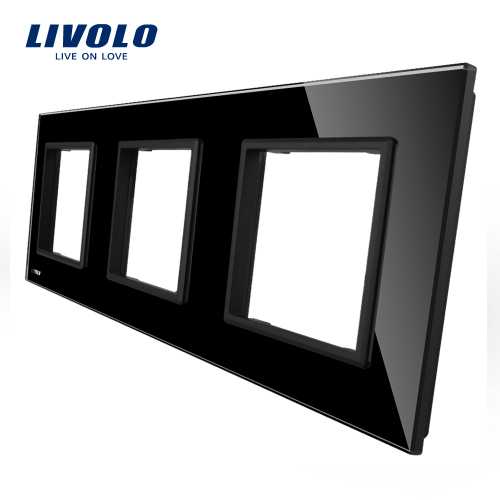 Ramă priză triplă din sticlă LIVOLO - rama tripla din sticla Crystal termorezistenta, rezistenta la zgarieturi, compatibila cu modulele de prize schuko sau media din gama Livolo: TV, telefon, audio, USB, internet, VGA. Dimensiune: 222 x 80 mm.