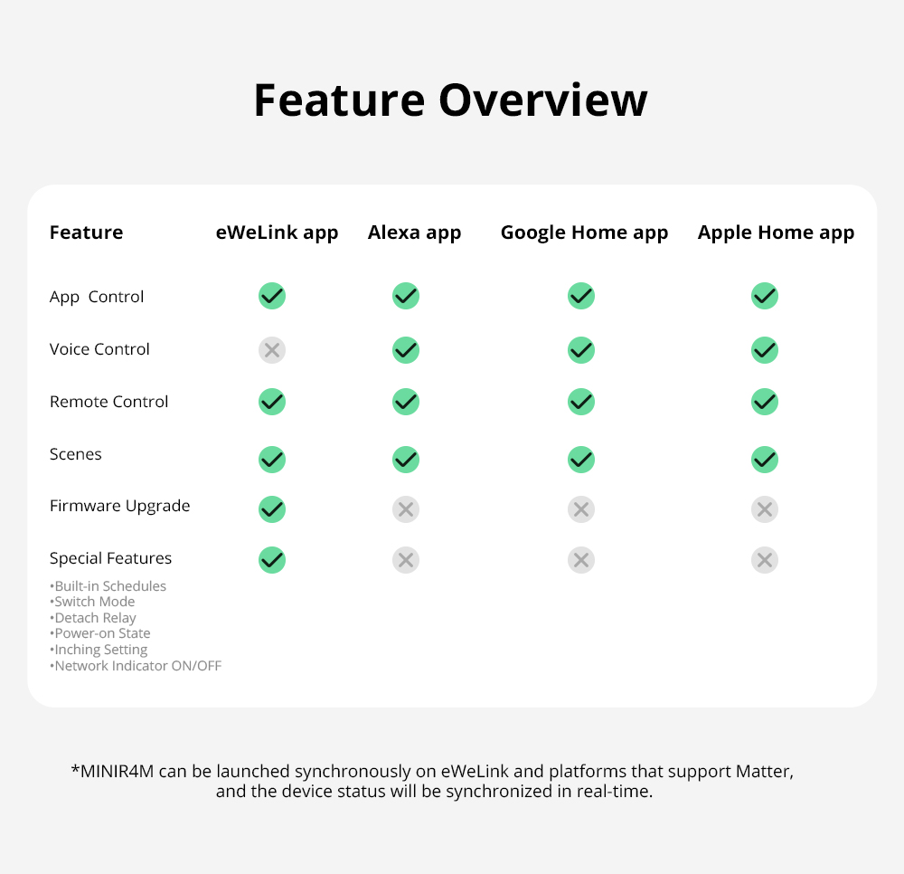 Revoluționați-vă mediul de acasă cu Sonoff Smart Switch MINIR4M - un dispozitiv inovator care combină tehnologia avansată, versatilitatea și siguranța. Datorită compatibilității sale Matter, MINIR4M funcționează perfect cu diverse mărci și platforme de dispozitive pentru utilizatorii finali, cum ar fi Alexa, Apple Homekit și Google Home. Dimensiunea sa miniaturală permite o instalare ușoară, în timp ce certificările TÜV, CE și FCC asigură siguranța și fiabilitatea. Descoperiți modul în care MINIR4M transformă gestionarea dispozitivelor de acasă într-o sarcină simplă, eficientă și plăcută.